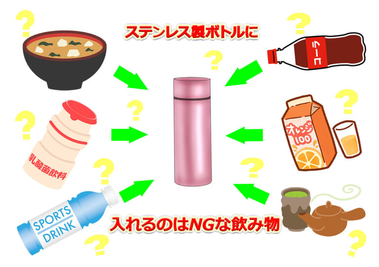 温度がキープできてありがたいステンレス製ボトルですが、入れてはダメ!!なNG飲み物があります。また、入れてはダメ・・・とまでは言いませんが、注意が必要な飲み物もあります。それぞれ理由とともにご紹介します! ステンレス製ボトルに入れてはいけない飲みもの ステンレス製ボトルに入れてはいけない飲み物は、ステンレスとの相性が悪い成分が含まれた飲み物です。 炭酸飲料 炭酸飲料こそ冷たいまま飲みたい、ぬるくな […]