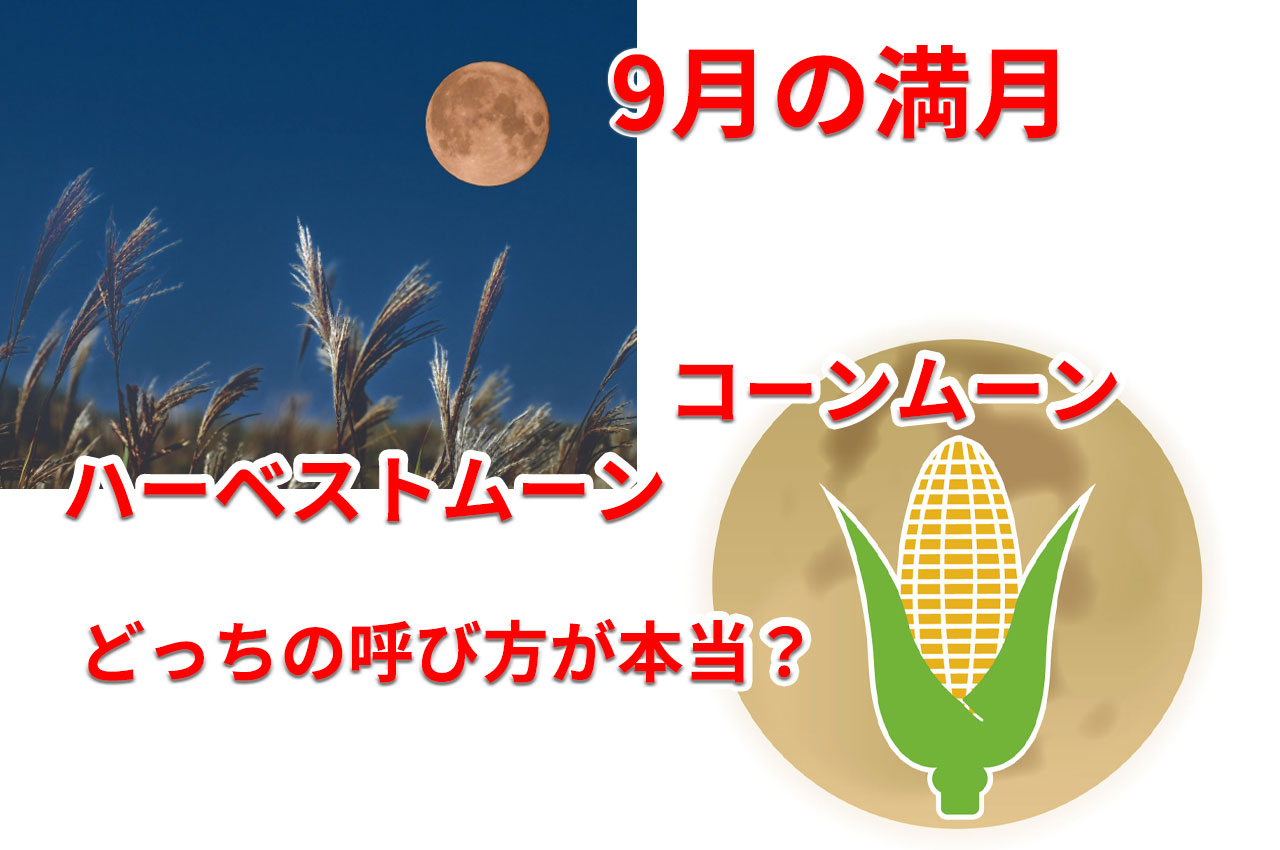 9月の満月について調べると、「コーンムーン」と書いてあるものと「ハーベストムーン」と書いてあるものがあります。