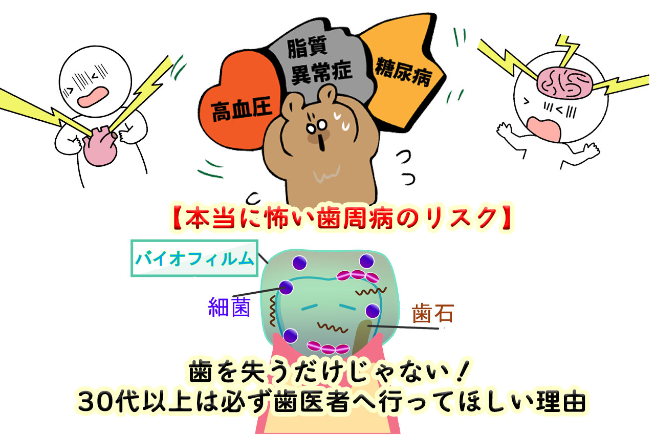 しかし、今回お伝えしたいのは「歯を失う」だけではない、歯周病に関する身体へのリスクについてです。